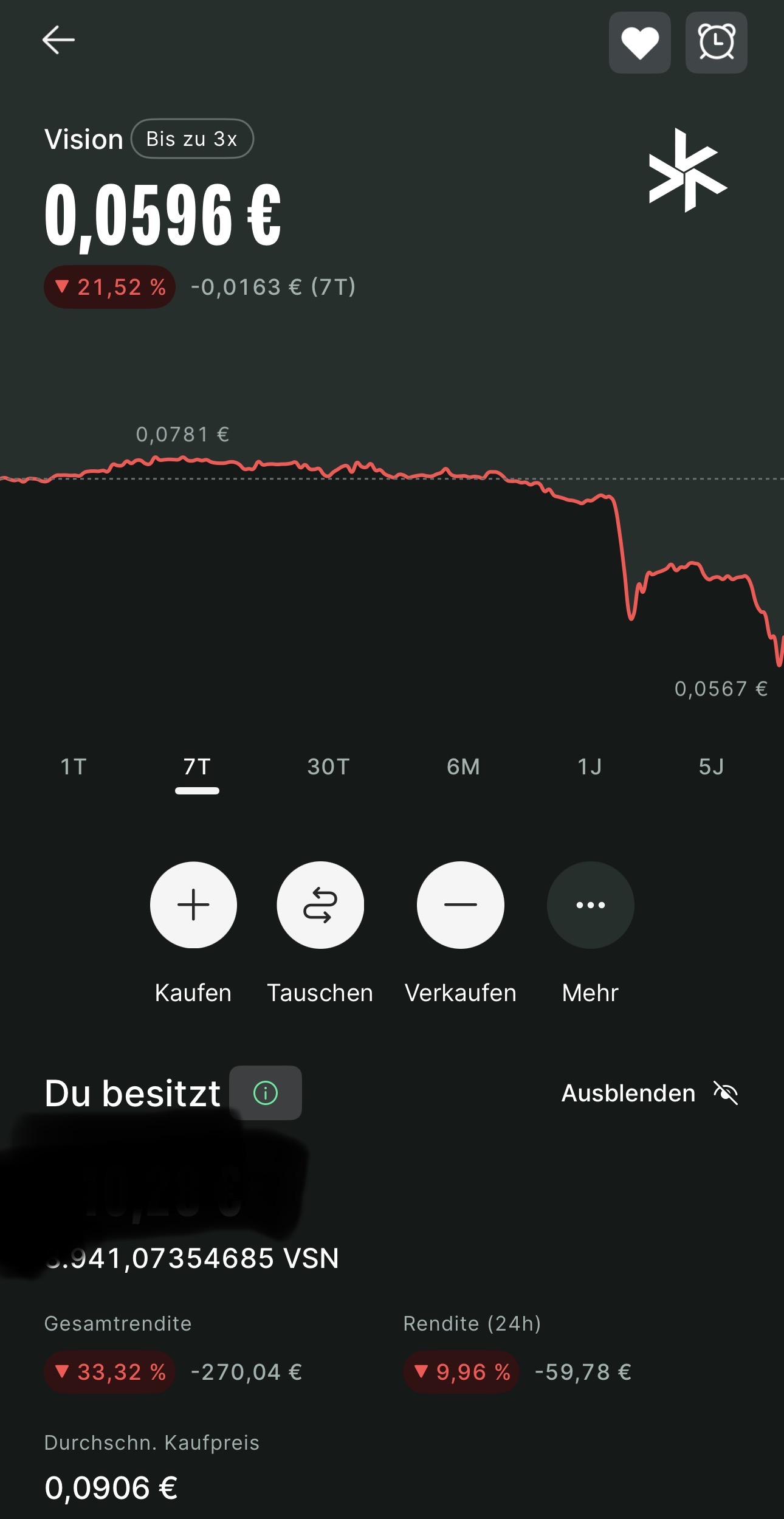 Jetzt wäre der optimale Moment um VSN nachzukaufen oder überhaupt zu kaufen, da der Kurs enorm gut ist. Wir haben es in den Anfängen bei 0,13€ gekauft und durch das nachkaufen liegt der Einstiegspreis nun bei 0,09€.